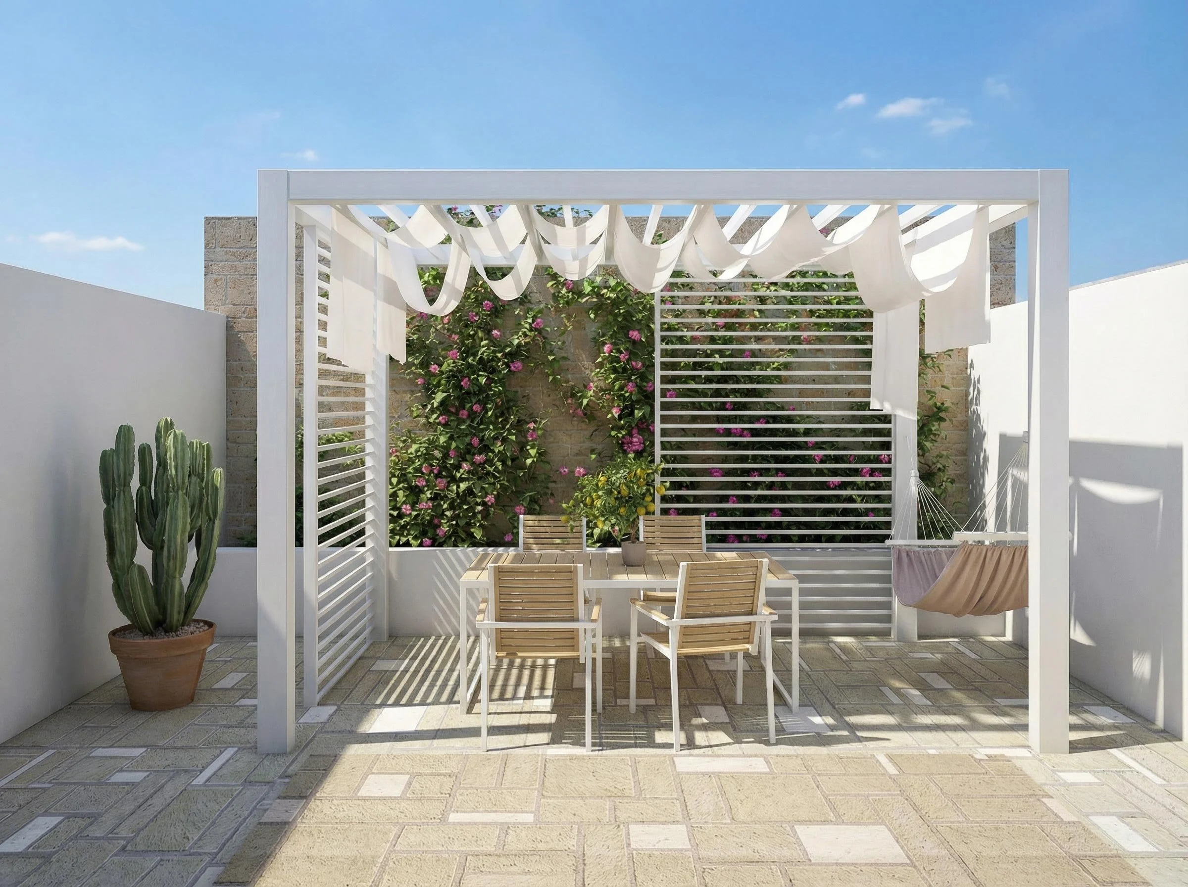A Porto Cesareo abbiamo dato forma a una serie di villette unifamiliari immerse nella quiete, a due passi dal mare, progettate e realizzate con un’attenzione particolare — quella per la vita quotidiana, la luce, il respiro degli spazi.
